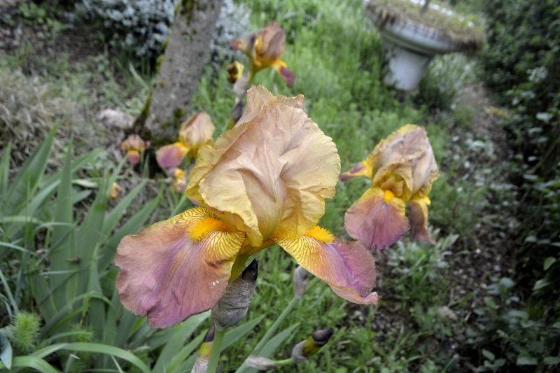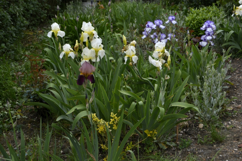 Beaucoup de fleurs en cette fin mai, dans les jardins, sous les fenêtres des maisons, ancolies, Julienne des Dames,anémones des montagnes, myosotis, iris, coquelicots, et d’autres dont je ne connais pas le nom 😦
