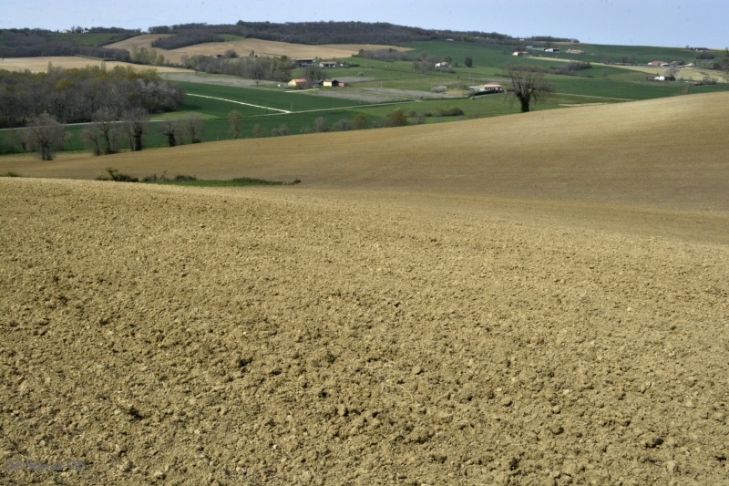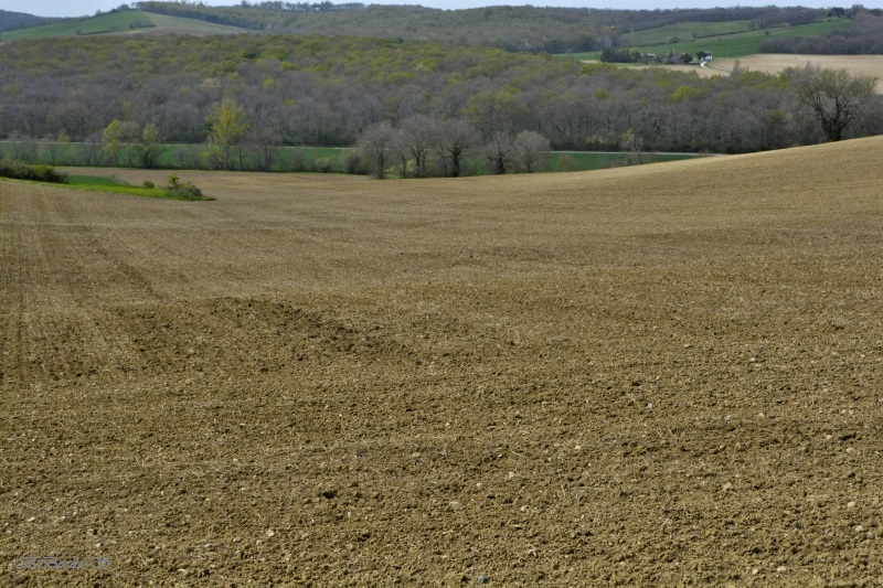 Par contre, si certains champs labourés offrent un camaïeu de marron allant du clair au sombre, les tournesols pas encore récoltés sont bien sinistres, même enrubannés de fil de la vierge…