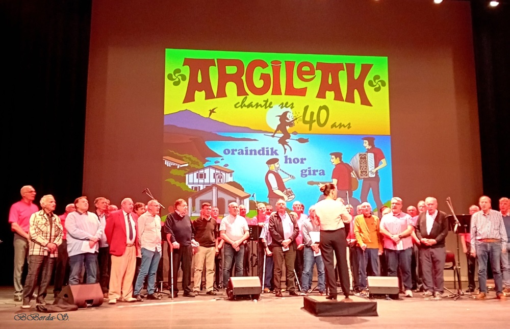 Et puis ce fut un mini-séjour vers « ma » Basquaisie, à l’occasion d’un autre anniversaire, celui des 40 ans de la chorale Basque « Argileak » (les faiseurs de lumière), créée au cœur de l’EDF Bayonne par mon père, René Borda. Hommage, mais aussi partage de ces trésors Basques que sont les chants, les danses… moment émouvant où chanteurs d’hier et d’aujourd’hui se sont retrouvés sur une même scène.