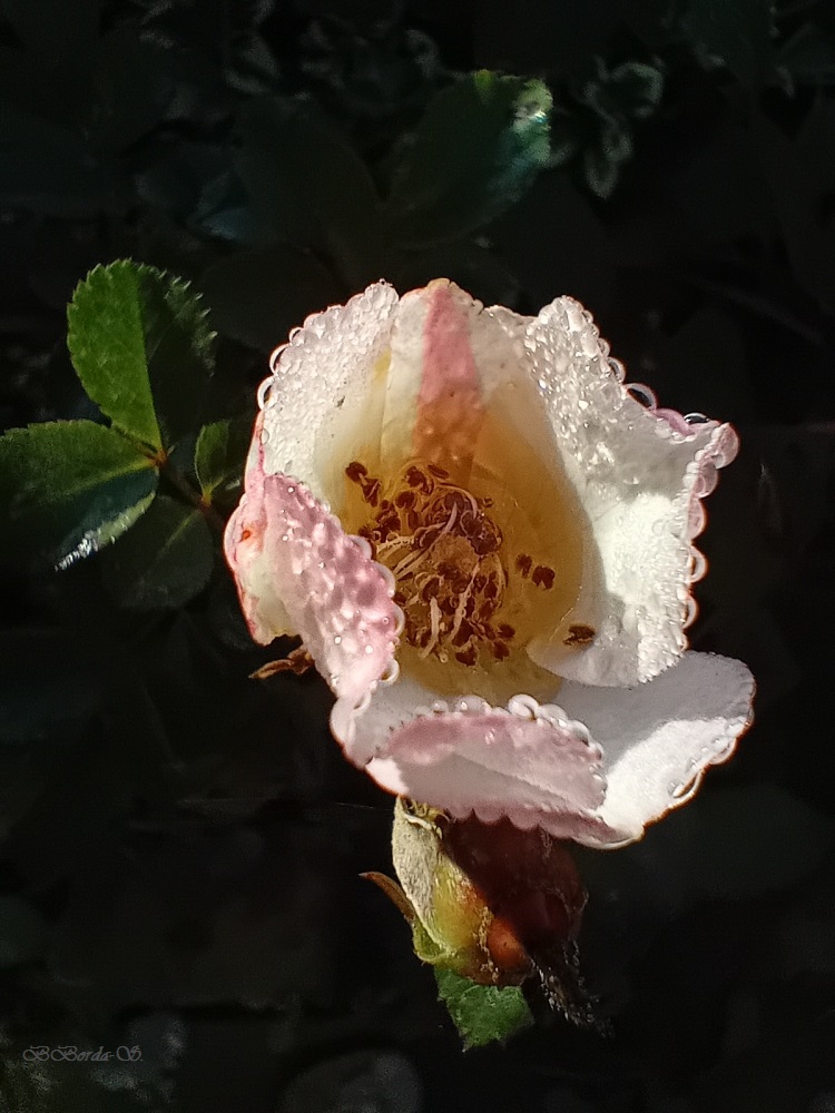 La rosée du matin emperlait les roses, les toiles d’araignées devenaient des colliers de diamants… l’automne dans toute sa beauté !