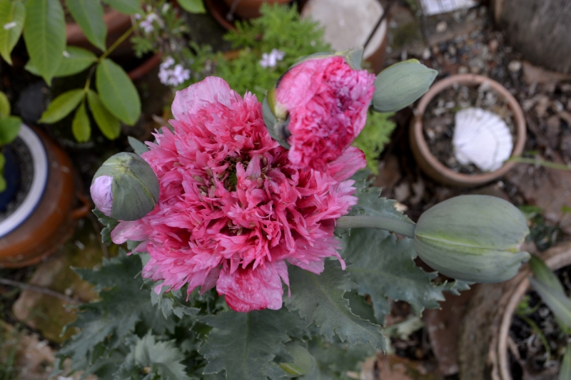 Tant pis, je continuerai demain. Ou après-demain. Ou plus tard. En descendant, sur le terrain, rencontré une touffe de violettes blanches, encore jamais vues ici. Les pétales cirés des ficaires brillaient au soleil, mais les fleurs se sont vite refermées sous la pluie. Les muscaris ont refleuri dans le grand pot bleu, annonçant le printemps de plus en plus proche.