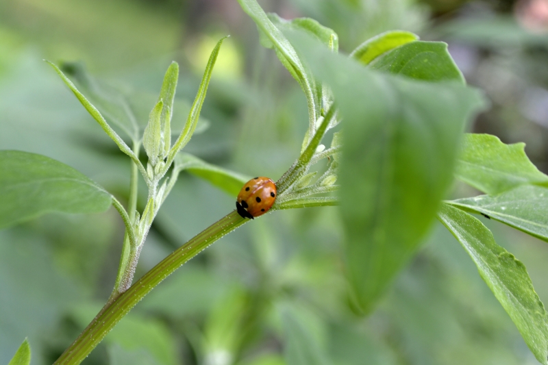 Des coccinelles se baladaient sur les feuilles de datura, deux plants arrivés là je ne sais comment… pour le moment, je les laisse tranquille, aucun passage de bébé ou enfant n’étant prévu.