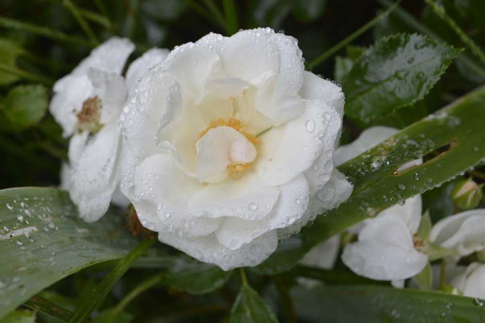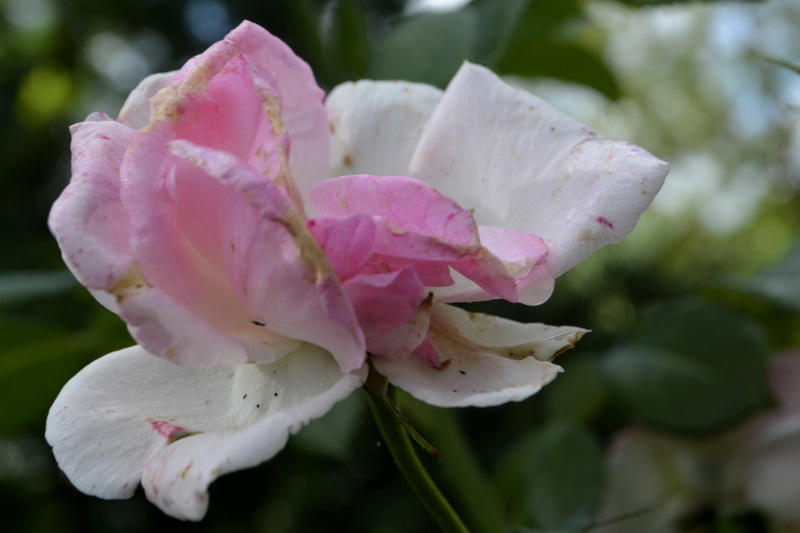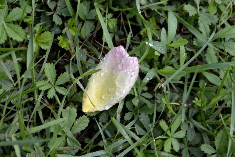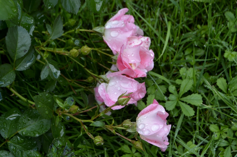 Petit tour de jardin, « à la fraîche », hier matin. Il avait plu dans la nuit, les rosiers en avaient perdu leurs pétales, se courbaient vers l’herbe.