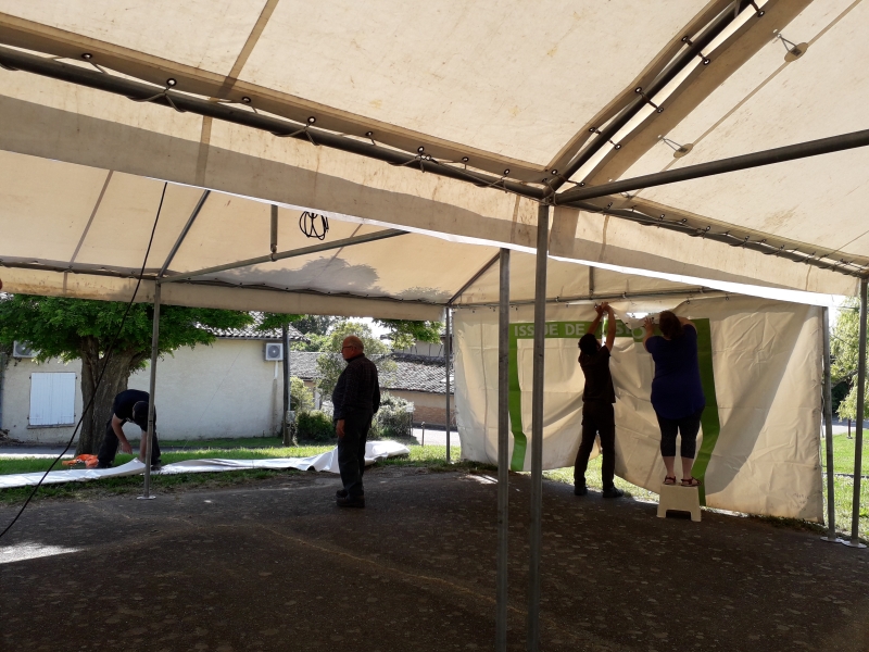 Installation des chapiteaux pour le 10ème Marché de Créateurs du lundi de Pentecôte dans notre hameau, organisé comme chaque année le lundi de Pentecôte par notre association Les Arts au Soleil. Merci aux amies et amis qui sont venus nous donner un coup de main !