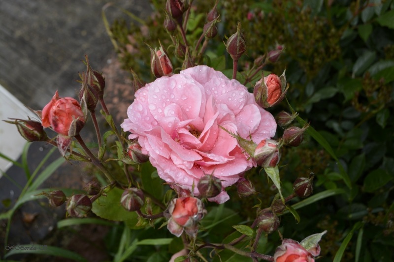 Retour par le jardin de Simone, accueillie par ce magnifique rosier sur le petit hangar de bois.