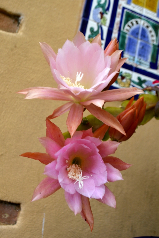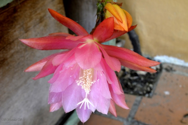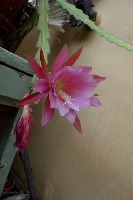 Une très jolie surprise, cette plante pas spécialement belle, au nom bien compliqué, disocactus phyllantoïde, installée dans un pot depuis bientôt 4 ans, a décidé cette année de fleurir… oh, pas beaucoup et pas longtemps, juste 3 fleurs, mais qu’elles sont belles !