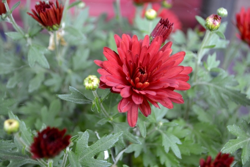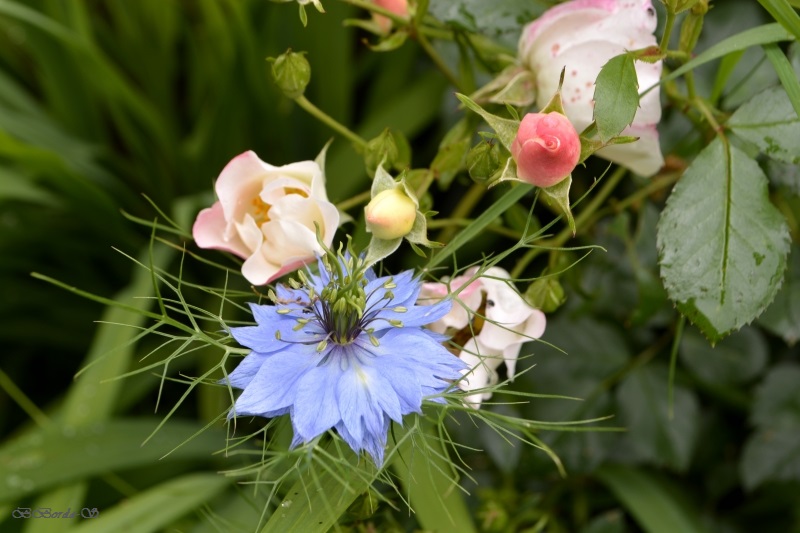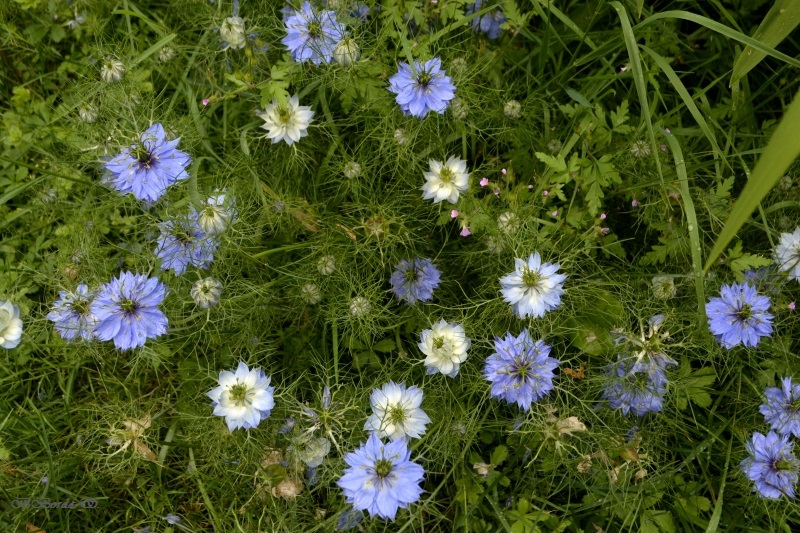 Et après une dernière journée de mai bien occupée et mi-soleil mi-pluie, pour ce premier jour de juin j’ai fait un petit tour de jardin dans l’herbe encore mouillée. Je n’avais pu le faire depuis une semaine ! Les nigelles voisinent avec les roses, les hampes des acanthes se réveillent, la dernière fleur du disocactus est ouverte, et mon chrysanthème continue sa double floraison, printemps et automne !