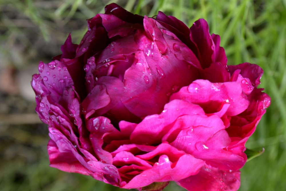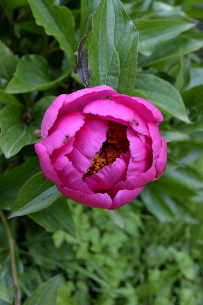 En 15 jours, depuis mon dernier bavardage, nous sommes passés de l’été à l’hiver puis revenus au presque été… une belle tempête, qui a bien abîmé les rosiers, pavots, bourrache, bref, les fleurs du jardin. Les pivoines rose sombre ont enfin réussi leur entrée (selon l’heure et l’éclairage, la couleur varie !)