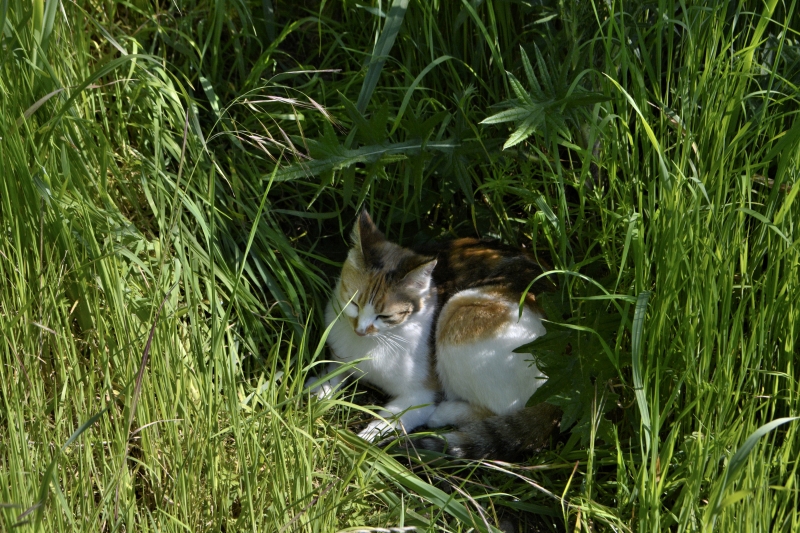 Nous voici déjà dans la dernière semaine d’avril… le temps a balancé tout ce mois entre soleil, après-midi presque estivales et matins frais, ciel gris et quelques averses. La nature verdit, fleurit, revit. A défaut de grandes marches, étant donné la météo, de temps en temps un tour de jardin ou, comme cet après-midi, entre deux pluies, un tour de champ avec Flipelette… qui maintenant se repose après s’être consciencieusement nettoyée et séchée. Quant à moi, le bas du pantalon est encore bien mouillé !