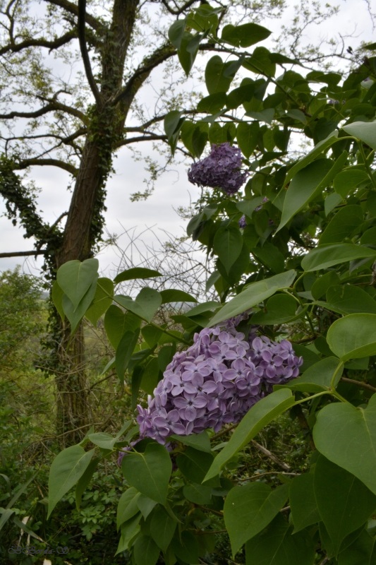Les lilas, malmenés par le vent d’ouest, et toujours les derniers du village à fleurir, embaument l’air. Les pauvres sont vraiment mal situés, mais résistent et nous offrent chaque année de belles grappes mauves et blanches.