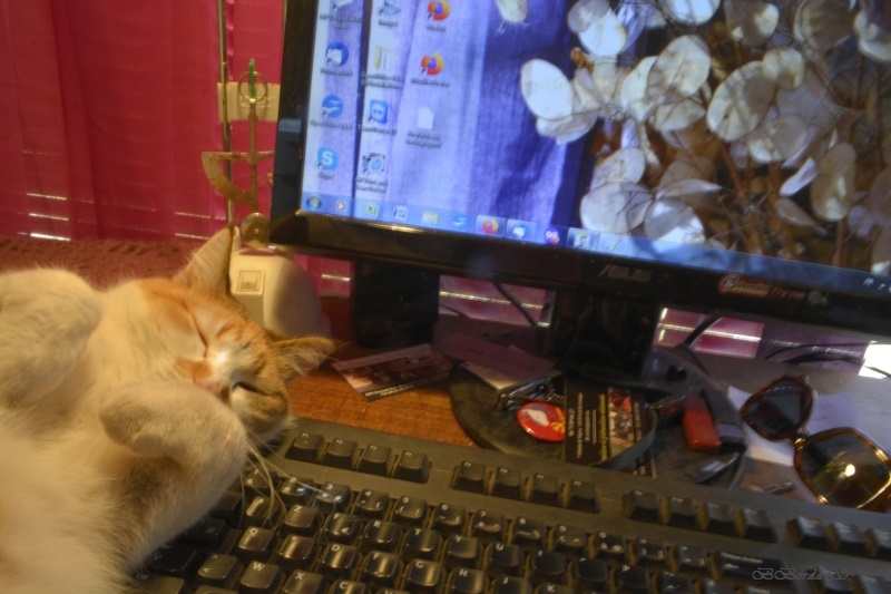 Après le tour de notre terrain, petit coup d’œil à l’arbre de Judée de Simone. Pas encore complètement fleuri.