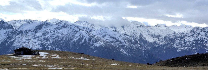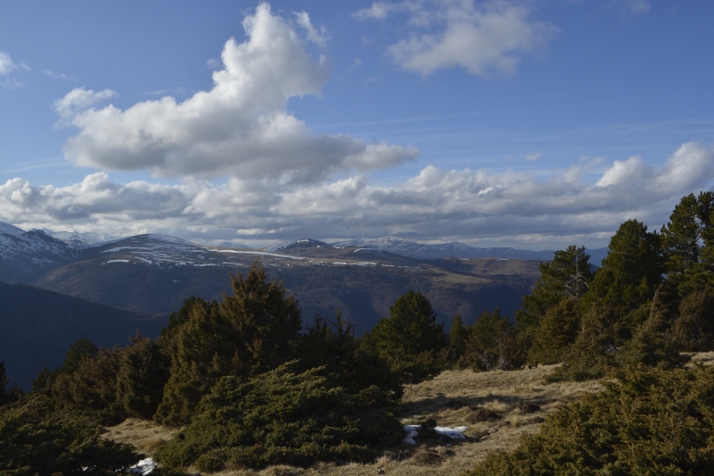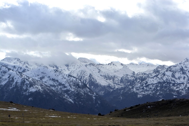Renseignements pris, la neige sera au rendez-vous. Journée ensoleillée, sur la route, les Pyrénées apparaissent par moments, oui, blanches. Mais plus on se rapproche, moins on voit de neige ! Après Tarascon (sur Ariège, pas l’autre), Les Cabanes, et on grimpe vers Beille. Tout de même, on passe de 470 mètres à 1 800 mètres d’altitude. Il paraît que lorsqu’on est à Beille, c’est comme si on était en Scandinavie… ils n’ont peur de rien ces Ariégeois 😉 ! (site de la station, vous verrez que je n’invente rien : http://www.beille.fr/fr/beille/detail/11/la-station ). Finalement, on commence à voir quelques plaques de neige sur les côtés, et… ouiiiiiiiiiiiiiiiiiiiiii ! il en reste. Bon, nous n’étions pas venus pour faire du ski, ni des raquettes, et c’est aussi bien car… (mais par contre, le paysage, ouaouh !)