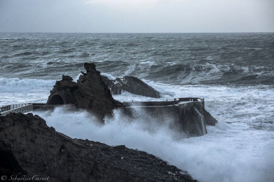 J’ai bien fait de passer du temps au jardin dimanche ! Depuis, tempête, rafales de vent, bourrasques de pluies, nuages gris devenant noirs d’orage en fin de journée… brrr ! on se croirait en plein hiver, et non pas à deux semaines du printemps. Pourtant, elles ont de jolis prénoms ces tempêtes : Karine, puis Myriam, quel prénom pour la suivante ? En tout cas, elles arrivent de l’ouest, ces dames, et je pense qu’il ne faisait pas bon se promener le long de l’océan ces derniers jours… Et comme j’aime bien aller faire un tour sur les pages dédiées à ma chère Basquaisie, en voici quelques photos (crédit photo Biarritz rocher de la Vierge : Euskal Kostaldea Photgraphie Pays Basque, crédit photo grotte du Phare de Biarritz : Seb Darrieutort, crédit photo plage de la Chambre d’Amour à Anglet : Karine Pierret-Delage). Toujours aussi beau, l’océan,malgré les tempêtes !