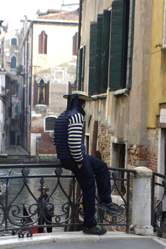 Puisque je parle des gondoles et des gondoliers, commençons par eux. Car il faut bien reconnaître qu’ils sont l’emblème de cette ville, tout autant que les palais, les Doges, la Salute et autres monuments 😉 . Et si leur tenue vous plaît, en bas du Rialto, côté riva del Vin, un très beau magasin leur est consacré, où vous trouverez chapeaux, marinières, et même forcole sculptées.