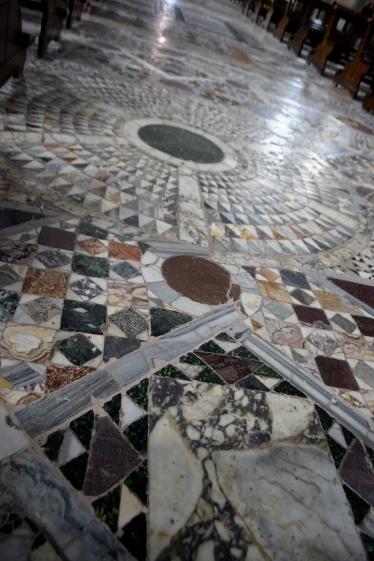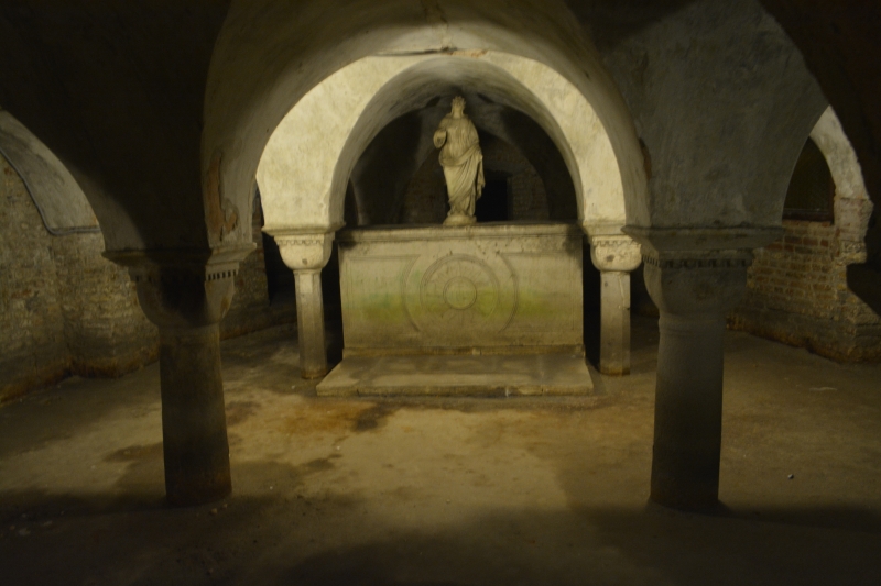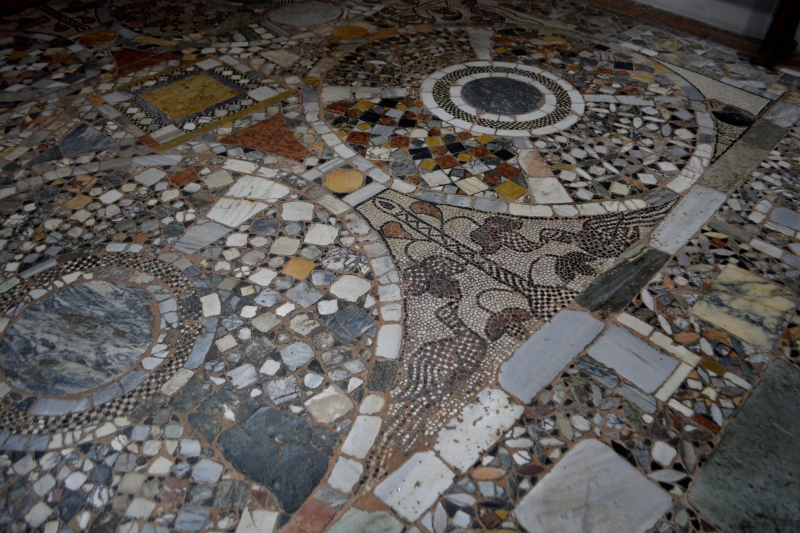 Balade ensuite jusqu’à la basilique dei Santi Maria e Donato. Fondations au VIIème, construction au XIIème, pierre blanche d’Istrie et briques rouges, pavement intérieur en mosaïques où animaux fantastiques, aigles, poissons et paons courent entre figures géométriques, et la « Vierge orante » au manteau bleu sur fond d’or. Un pur chef d’œuvre.