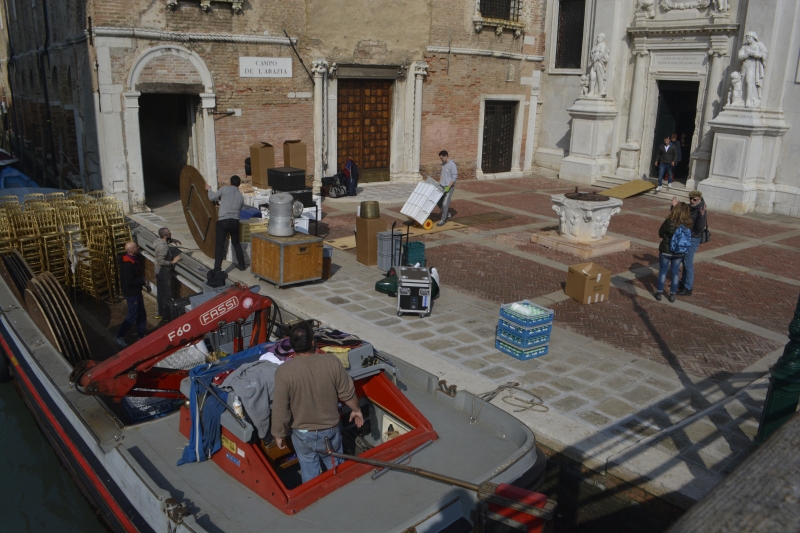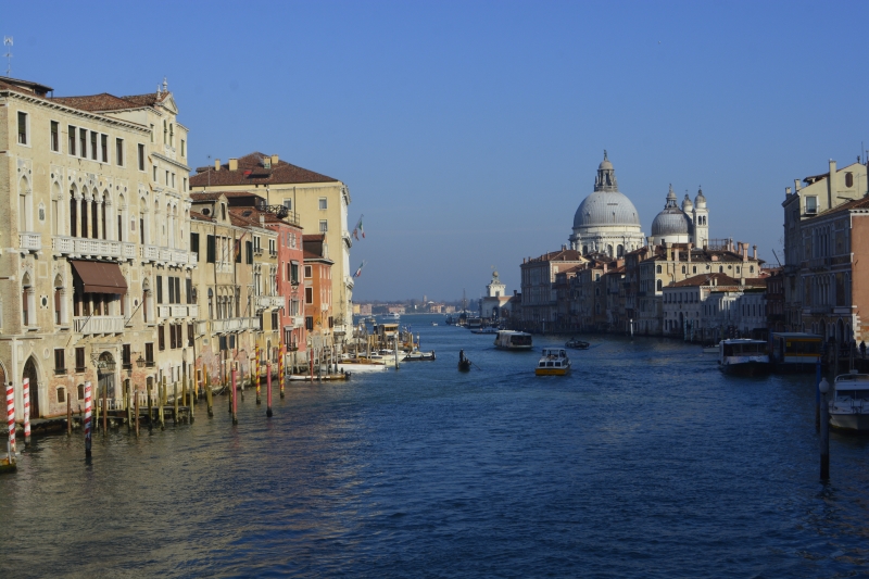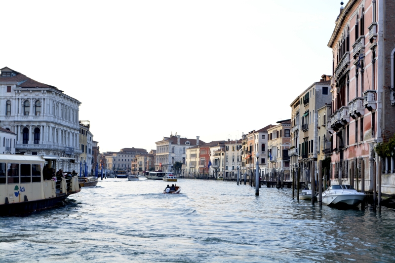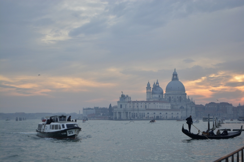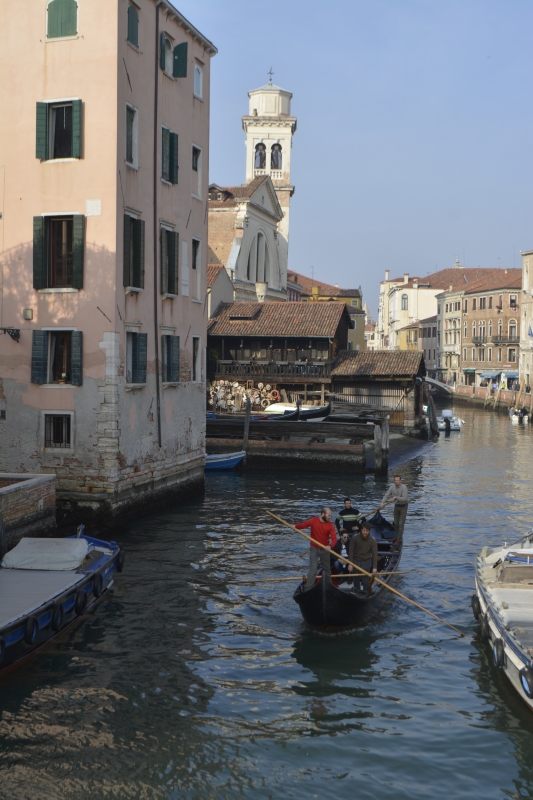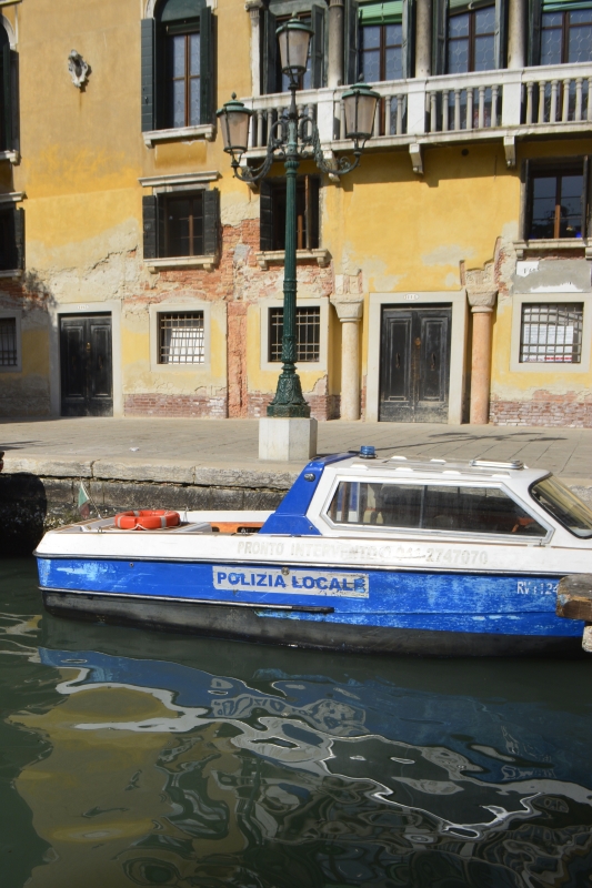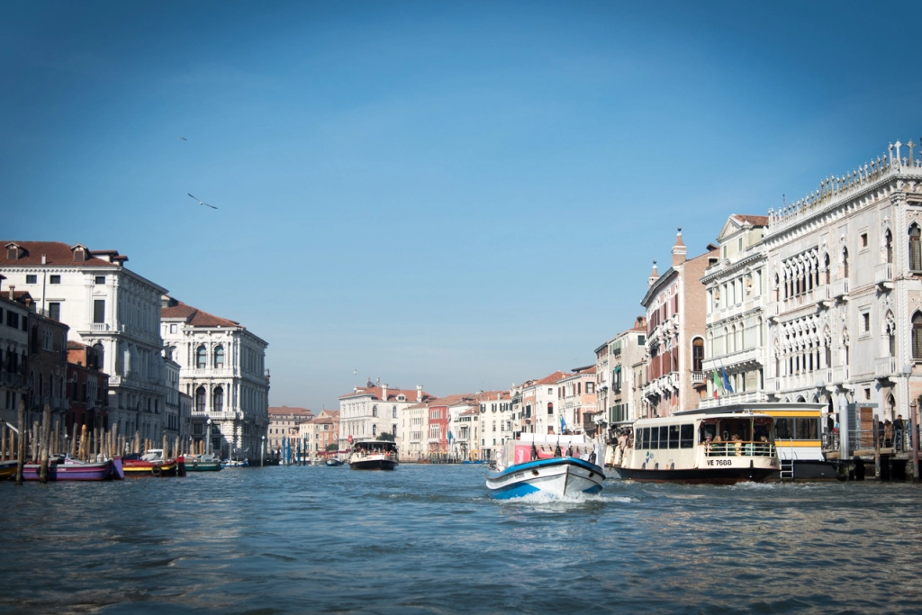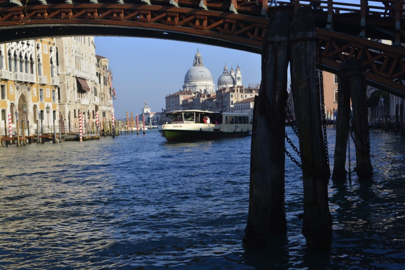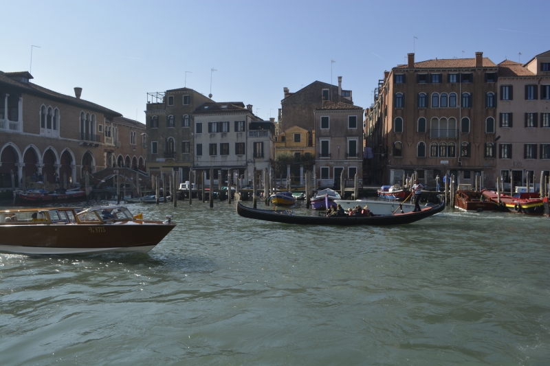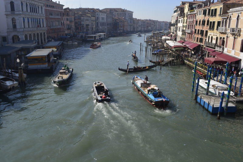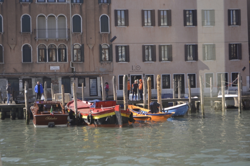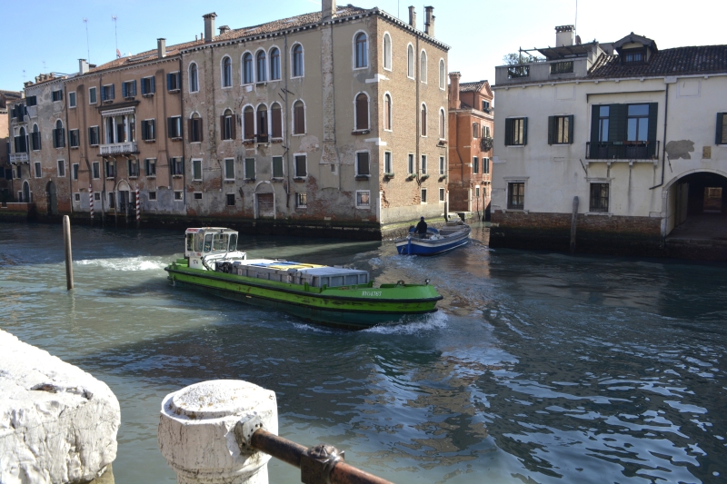 Le matin sur le Grand Canal, c’est un ballet d’embarcations de toutes sortes… taxis, barques de transports, de travaux, bateaux-poubelles, gondoles, sandalo, vaporetto etc. Tout cela se croise, dépasse, double, avance dans un désordre savant et bien organisé !