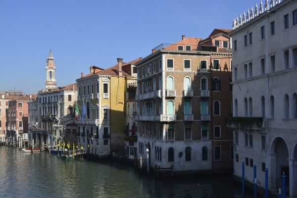 Donc, les canaux… et bien sûr l’honneur revient au Grand Canal, bordé de palais en veux-tu en voilà, mais aussi de maisons plus modestes. Bon, certains palais sont parfois tristounets, mais c’est aussi ce qui fait le charme de Venise, ces murs anciens, aux couleurs fanées, aux sculptures patinées.