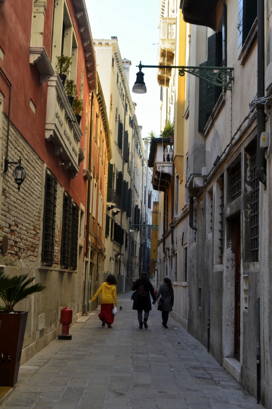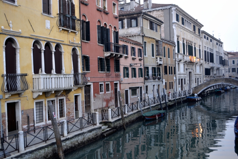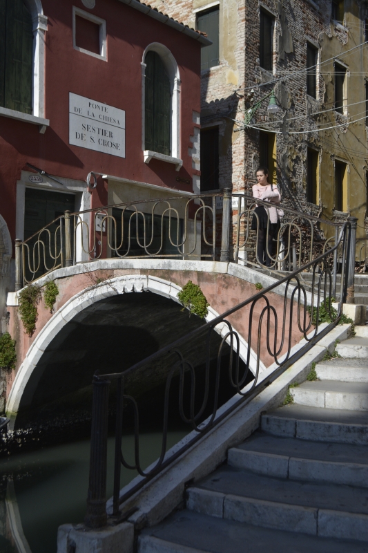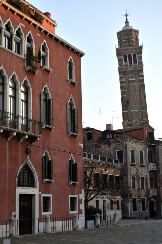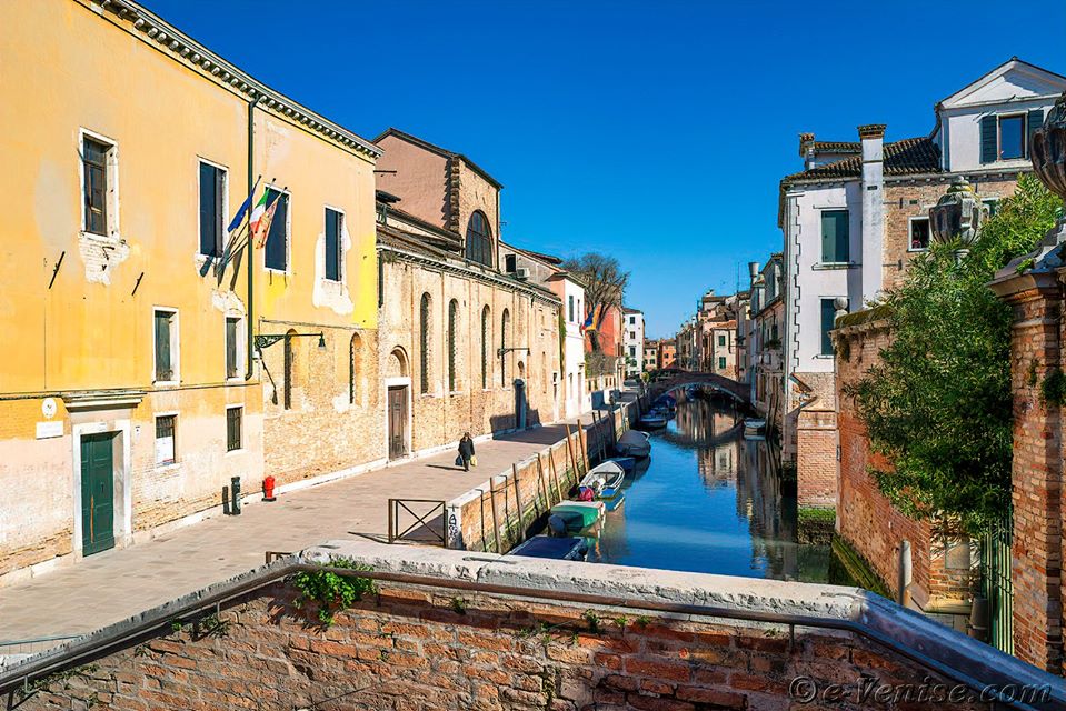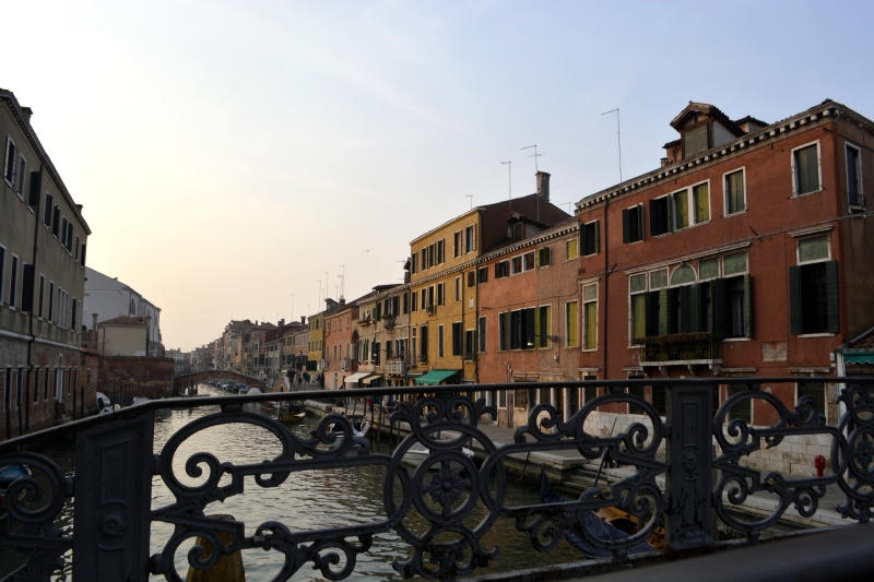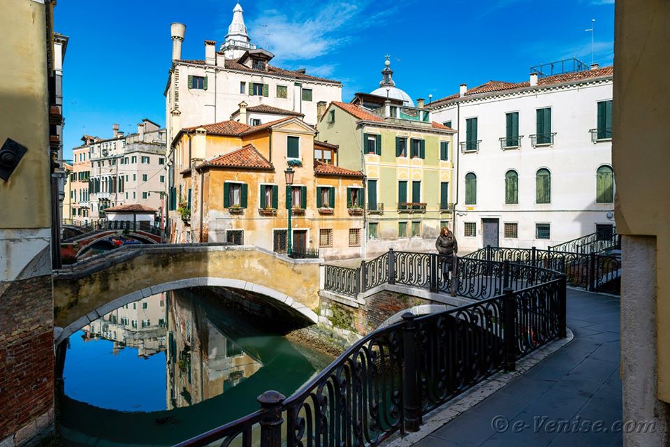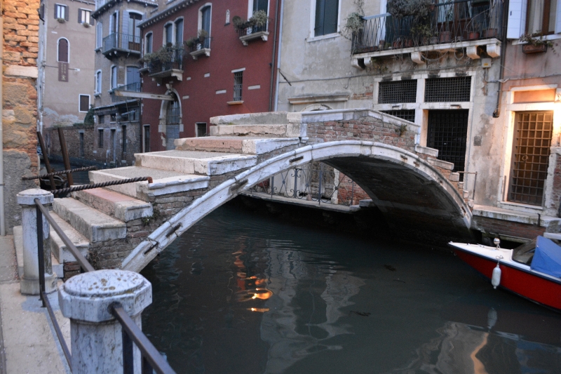 Je n’irai pas jusqu’à dire « mon quartier préféré », parce que ce serait presque mentir : j’aime beaucoup Castello, et Dorsoduro, et San Polo/Santa Croce ! Mais j’avoue que j’ai un petit faible pour Cannaregio. Nous y avons souvent logé, près du campo dei Mori et de la maison du Tintoret, et c’est un quartier à la fois calme, populaire, et vivant. Par contre, je ne sais pas très bien comment vous le présenter… peut-être en vrac ? avec ses maisons tantôt basses tantôt à étages, avec ses palais et leurs portails, avec ses quais animés en soirée, ses ruelles et ses ponts dont un devenu rare à Venise : sans parapet ! …