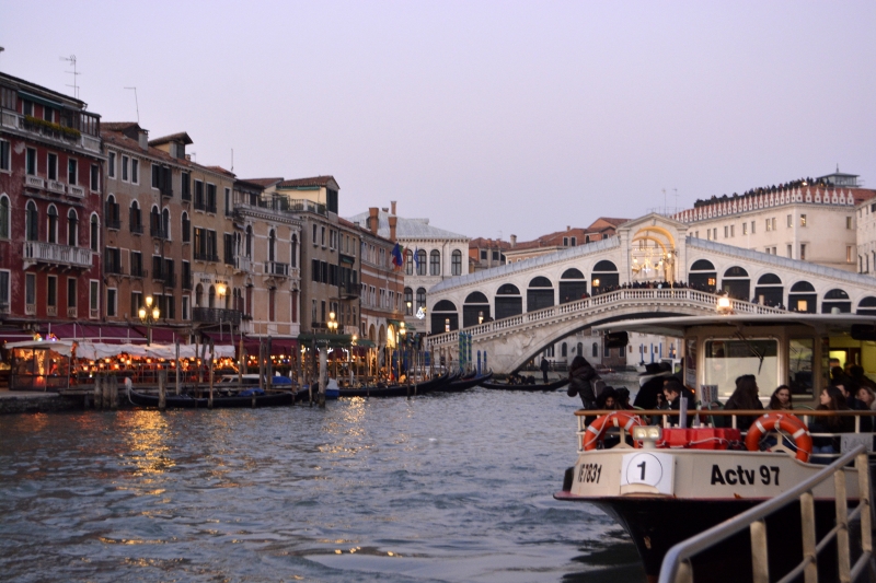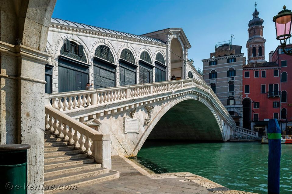 Du haut du pont, bien sûr, la vue sur le canal et la ville est superbe, mais la bousculade est telle qu’elle peut vous décourager, alors… on admire de loin, depuis les quais voisins, ou du vaporetto, par exemple, en fin de journée quand on rentre bien fatigué des balades… A voir peut-être, mais nous n’avons pas choisi d’y aller, depuis la terrasse du bâtiment tout nouvellement rénové, il Fondaco dei Tedeschi ?