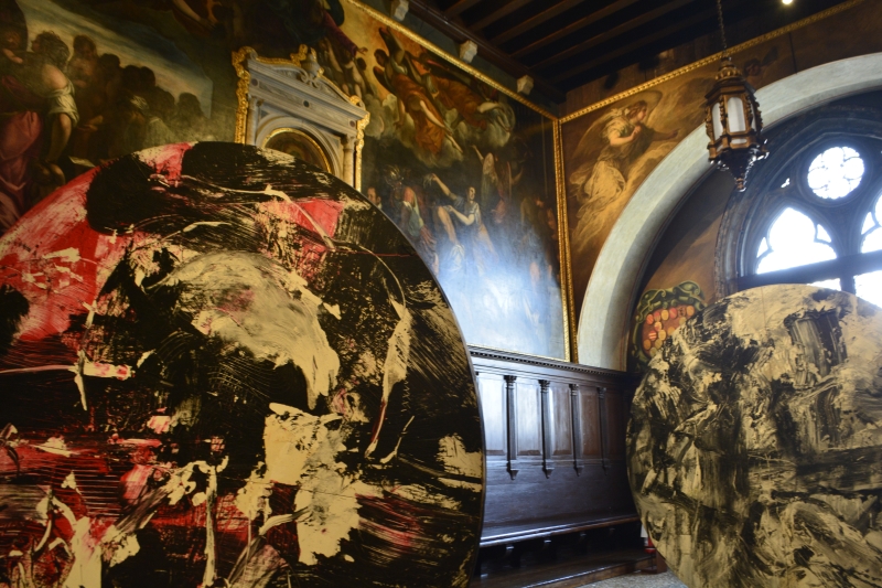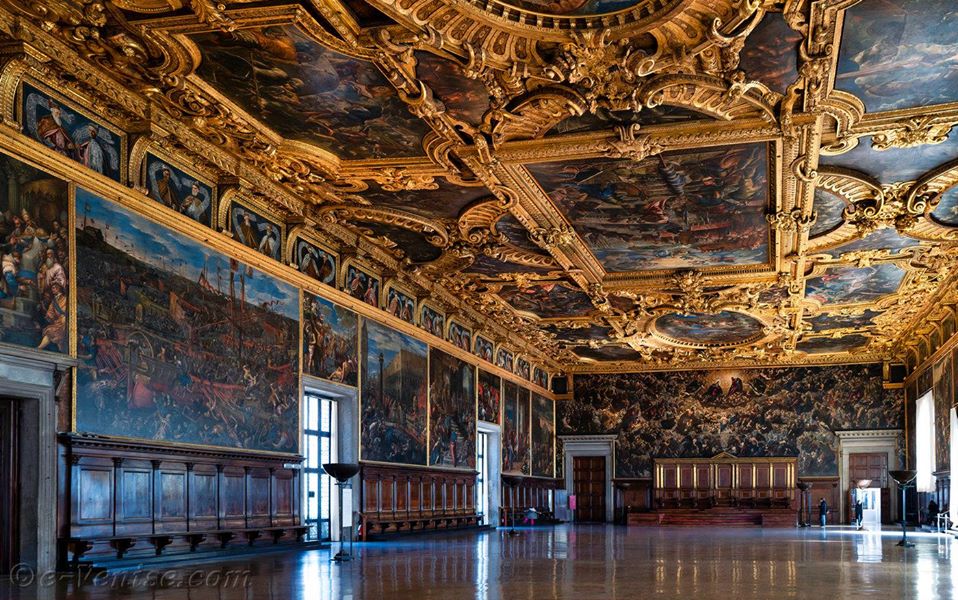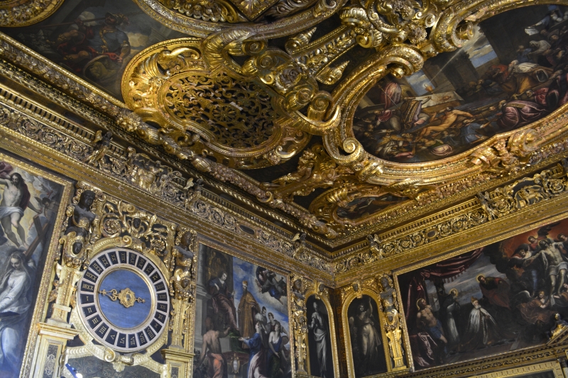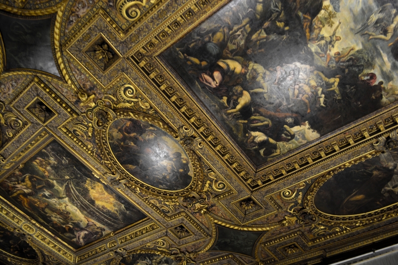 Et le Palais des Doges. Grandeur et démesure, salles d’apparat couvertes d’ors et cachots humides, portes dérobées et escalier d’or, marbres et boiseries. Et pour les tableaux, on va de batailles en combats, grâce à tous les grands peintres et sculpteurs de la Venise et de l’Italie d’hier !