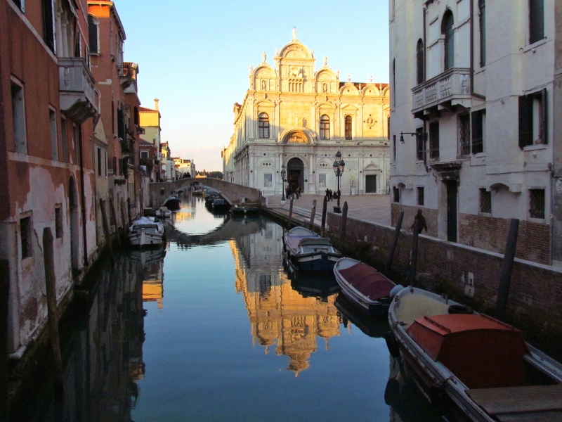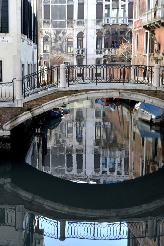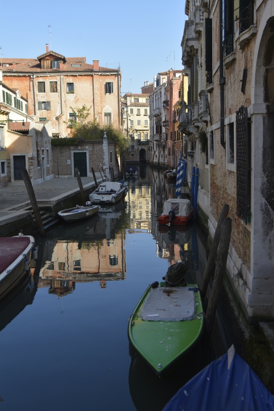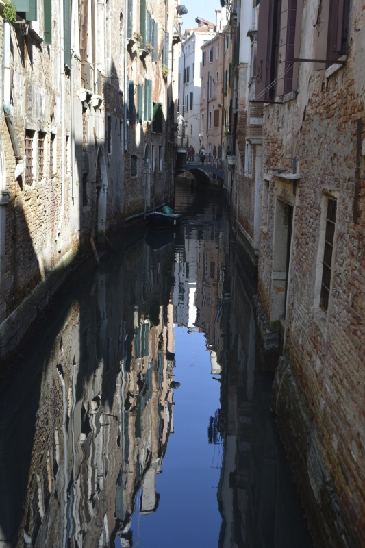 Les « petits » canaux ne sont pas en reste pour l’encombrement, dès le matin, mais tout se calme l’après-midi. Et au hasard (ou presque) des rues, de pont en pont, on découvre une Venise tout en douceur, calme, sereine. Venise et ses reflets, sur les rii à peine troublés par quelques gondoles égarées…