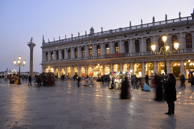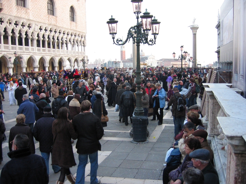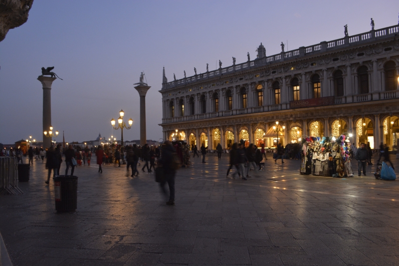 Ce n’est pas le cas sur la piazzeta San Marco, et encore, j’essaie toujours de patienter, d’attendre une éclaircie avant de faire la photo 😉 ! sauf une fois où j’étais tellement sidérée par tant de monde (après avoir passé la moitié de la journée dans des coins plus que calmes), que j’ai fini par faire une photo… quant à celle de nuit, bien sûr, en fin de journée il y a déjà bien moins de monde, beaucoup de « touristes » quittant Venise en fin d’après-midi.