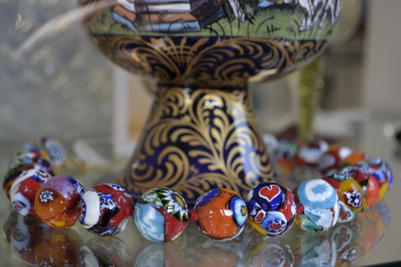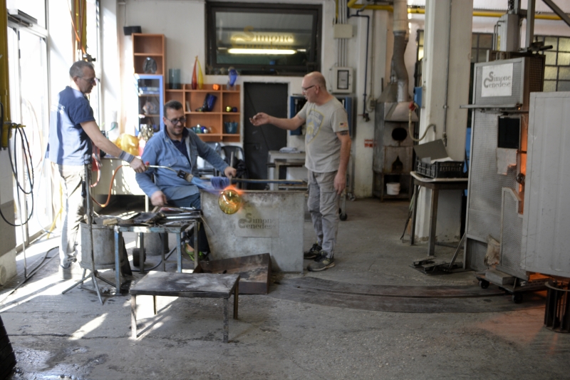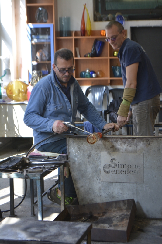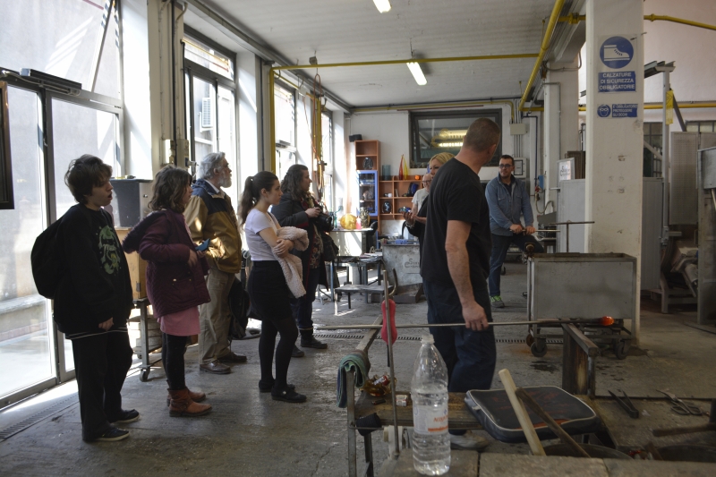 Murano, la plus grande de la lagune. Ville du verre. A votre descente du bateau, vous êtes harponnés pour aller visiter les ateliers des souffleurs de verre… mais pas ceux des fabricants de ces si jolies « perles » multicolores, qui ressemblent à des bonbons 😉 . Trois impératifs pour cette île : la basilique, l’achat d’un collier en perles de Murano pour notre amie Monique, et… trouver une place au petit restaurant populaire Ai Bisatei. Bon, d’accord, le restaurant a un peu changé depuis ses débuts, mais à midi ce sont toujours les travailleurs qui viennent s’y restaurer, même si de plus en plus de touristes viennent se mêler à eux. Évidemment, les haltes-magasins n’ont pas manqué… surtout après le passage dans l’atelier Cenedese, où nous avions rendez-vous pour une démonstration. Dommage, nous sommes tombés sur la fabrication de verres de table, pas très très intéressant, car un peu répétitif, mais … nous nous sommes réchauffés 😉 !