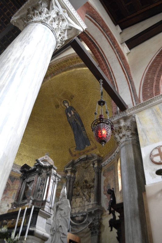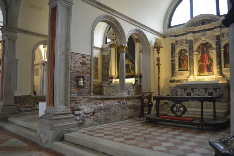 Santa Maria Formosa, qui a donné son nom à la belle place qui l’entoure, place bordée de palais (dont celui du vainqueur de la bataille de Lépante), abrite un triptyque de Vivarini (encore lui, oui !), une icône. Bien que l’entrée soit payante (ou Chorus Pass), personnellement je n’ai pas été époustouflée comme dans d’autres églises…