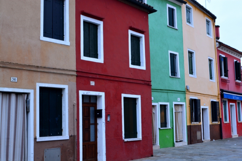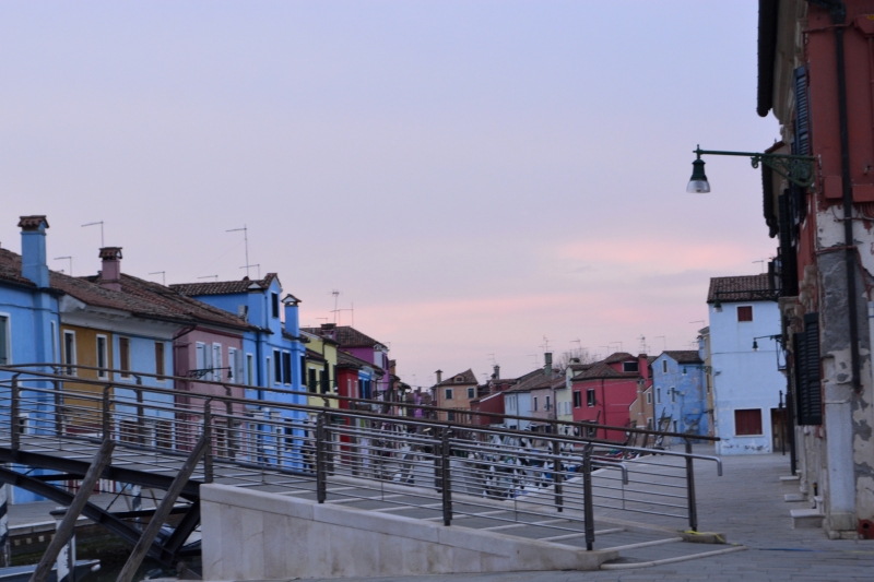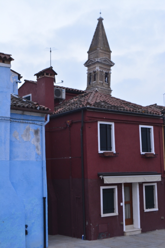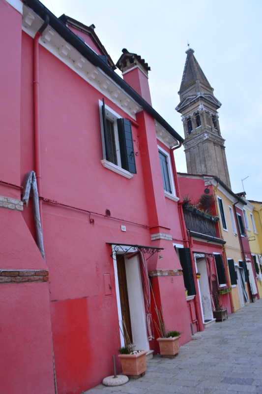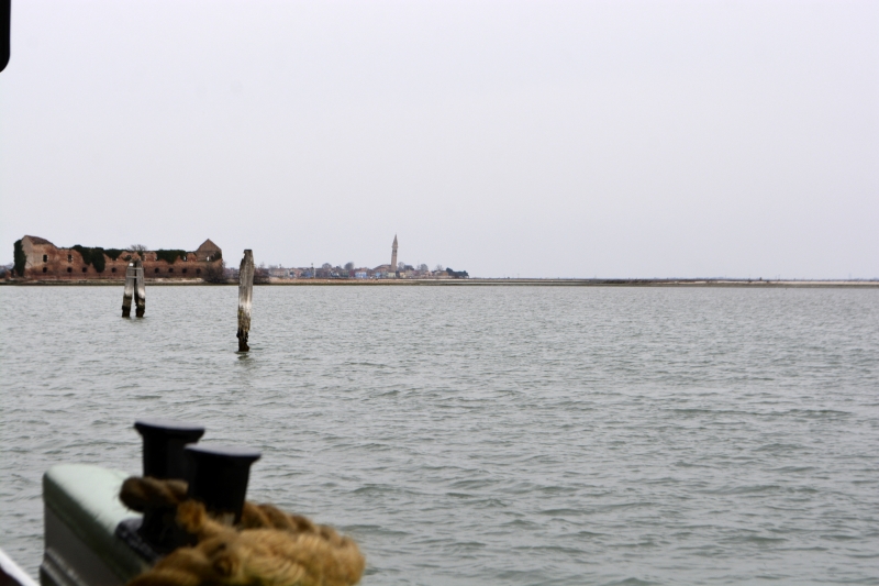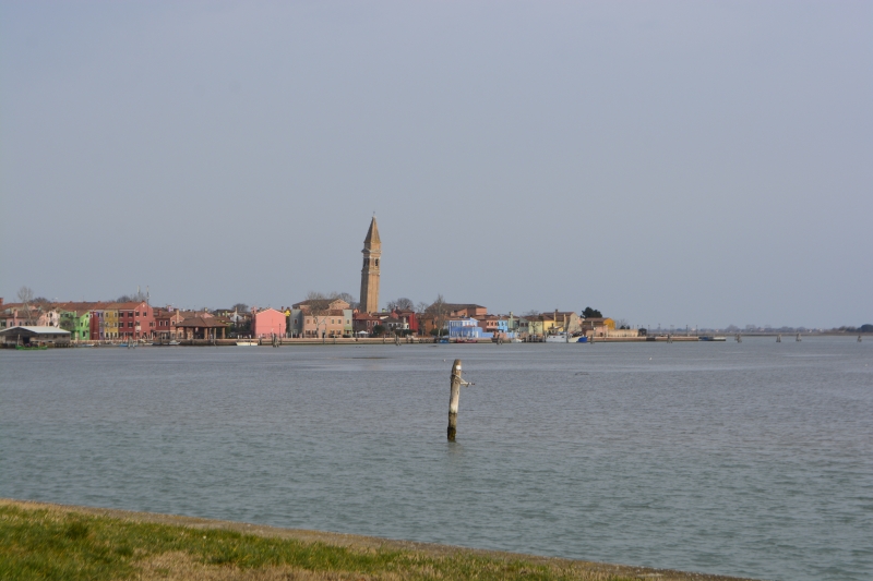 Sur le trajet, quelques îlots qui semblent inhabités, et au loin Burano, reconnaissable à son campanile bien penché (mais quel campanile ne penche pas, dans cet endroit ? A tel point qu’on se demande parfois comment prendre la photo !) et les couleurs des maisons qui se devinent et se précisent au fur et à mesure de l’approche.