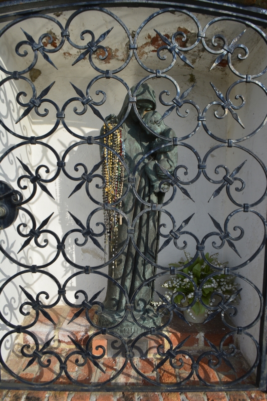 Mais j’aime bien aller faire un petit coucou à la figure bizarre qui garde l’entrée du campanile de l’église !