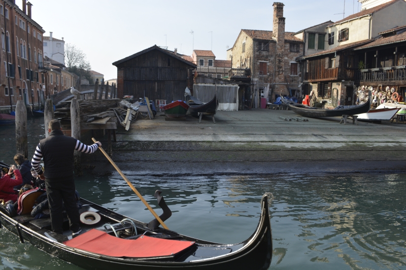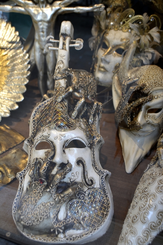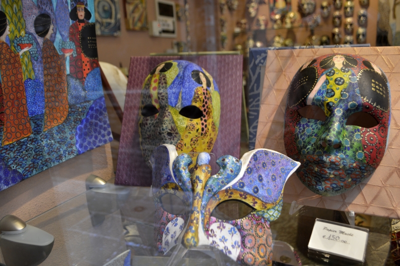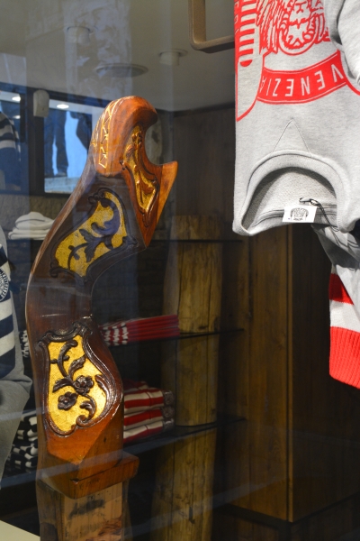 Il y a tout de même quelques boutiques qui valent qu’on s’y arrête, un fabricant de masques à la jolie devanture, ou la boutique des gondoliers…
