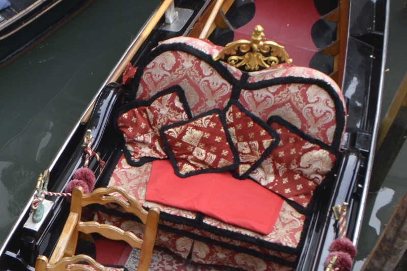 Je suis partie à Venise avec dans mon sac un policier de Vivian Moore « les gardiens de la lagune ». L’intrigue se passe en 1162. J’avoue avoir eu beaucoup de mal à imaginer la Venise décrite. On a beau savoir que cette ville est faite de centaines de petites îles reliées entre elles au fil du temps, de canaux recouverts (les rues nommées Rio Terra, entre autre), il est difficile de l’imaginer avec de grandes prairies, des places enherbées ! Les ponts ont remplacé les planches entre deux îlots, les chevaux ne se promènent plus sur des chemins, les palais ont cédé quelques arpents de leurs jardins pour permettre aux habitants de s’installer plus confortablement qu’en ce XIIème siècle…. et les gondoles se sont perfectionnées. A tel point, même, que certains en importent de Chine en plastique ou je ne sais quel matériau… mais attention, les gondoliers, les vrais, n’ont pas le droit de les utiliser, ouf !