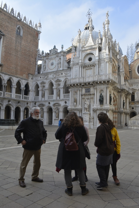 Finalement, chacun est parti de son côté, Raymond pour « un ombra » au petit bistrot du marché (photo de Guillemette), les filles pour faire les touristes au milieu des stands divers, et moi pour un petit coucou au Gobbo du Rialto, qui soutient l’escalier par où grimpait le crieur pour annoncer les lois…