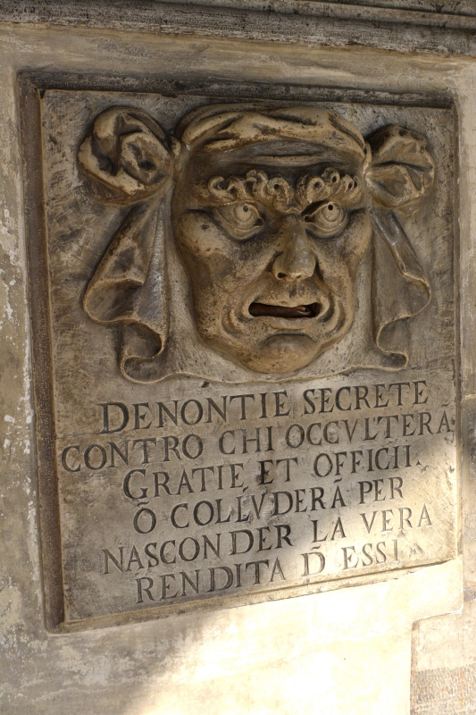 Je suppose que vous n’avez pas besoin d’entendre l’Histoire de ces lieux mythiques… Alors, juste quelques photos. (Pour rappel, si vous voulez mieux voir une photo de la galerie, cliquez sur la photo et, en principe, elle s’affichera en plus grand). Avant de commencer, un détail de ces abominables têtes de dénonciations que l’on peut encore trouver dans certains coins de la ville, mais qui ne servent plus (du moins on l’espère…)