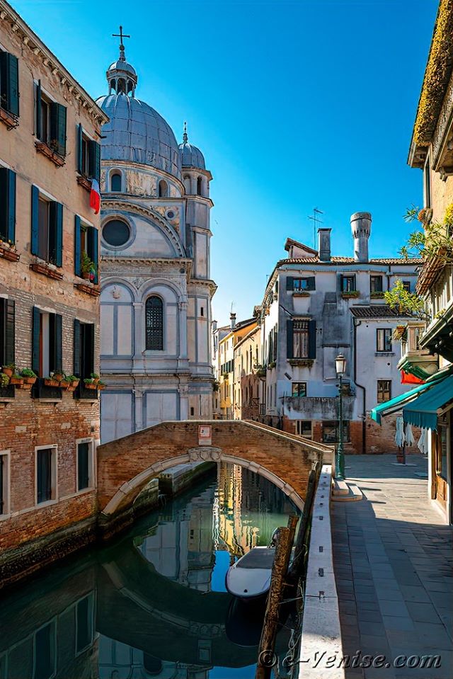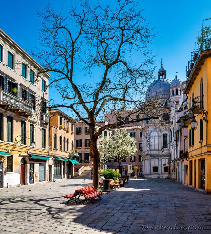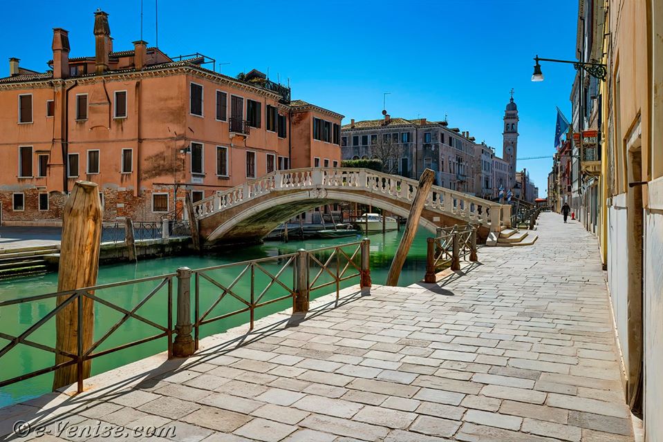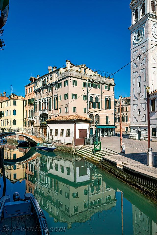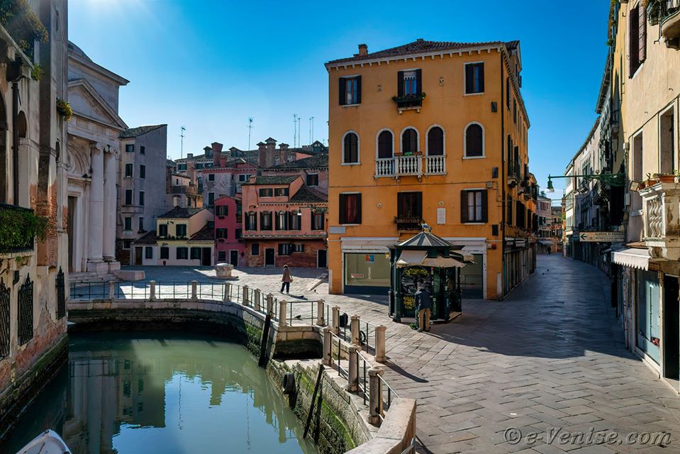 Une fin de semaine à Venise, ça vous tente ? Grâce à Luca et Daniela, qui postent sur leur page FB et sur leur site une photo presque quotidiennement, c’est possible ! Venise, sereine, Venise libérée de ses énormes paquebots qui déversaient un flot de touristes sans scrupules (les croisiéristes, pas les touristes, ou du moins pas tous j’espère…), Venise ensoleillée, Venise qui peut respirer, où les Vénitiens les vrais (il en reste encore quelques uns) peuvent se retrouver pour papoter sur un banc (en gardant la distance recommandée), sur les quais, et peut-être redécouvrir une ville qu’ils ne voyaient plus, surtout dans certains quartiers et certaines rues. Car il faut bien l’avouer, ces hordes de touristes débarquant le matin pour repartir l’après-midi ne pouvaient que suivre les rues les plus connues, ne voir que les lieux « communs » de la ville (pourtant pas si communs que ça), et s’agglutiner Place Saint Marc, sur le pont du Rialto ou celui de la Paille, et c’est bien dommage. Ils n’avaient pas le temps de bader, de lever le nez, de rêver, de s’assoir sur une placette pour regarder la vie… Aujourd’hui, la vie semble avoir déserté la ville, mais restent les habitants amoureux de la cité, et qui aiment partager leur passion.