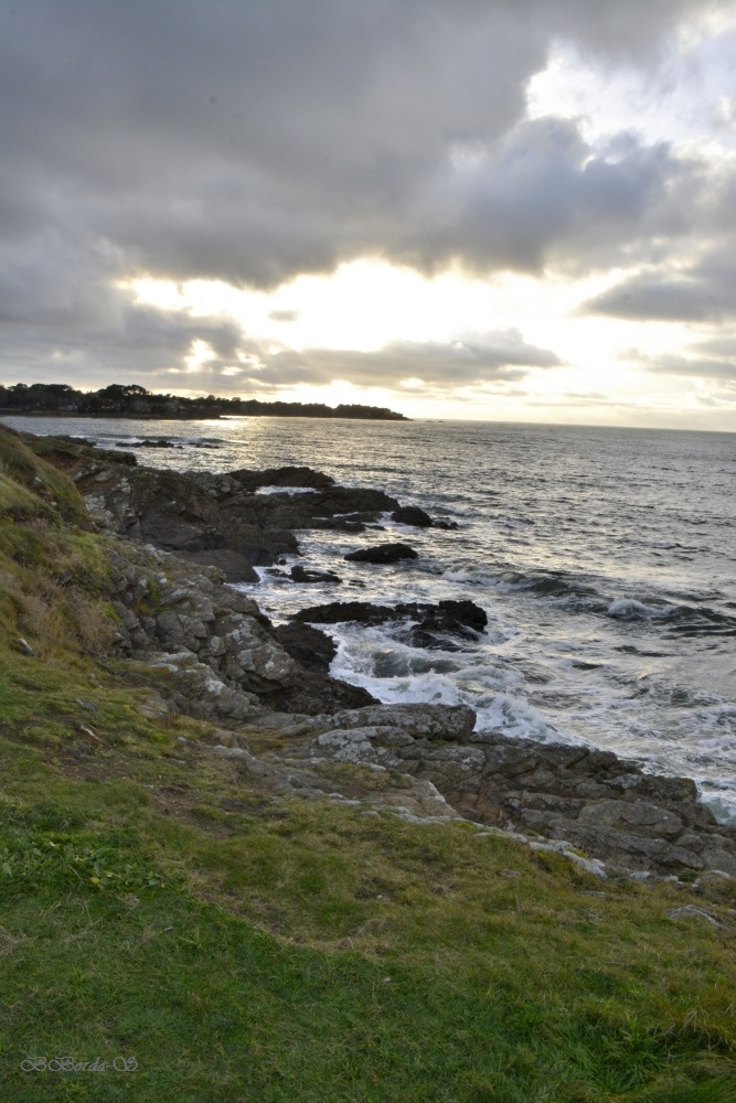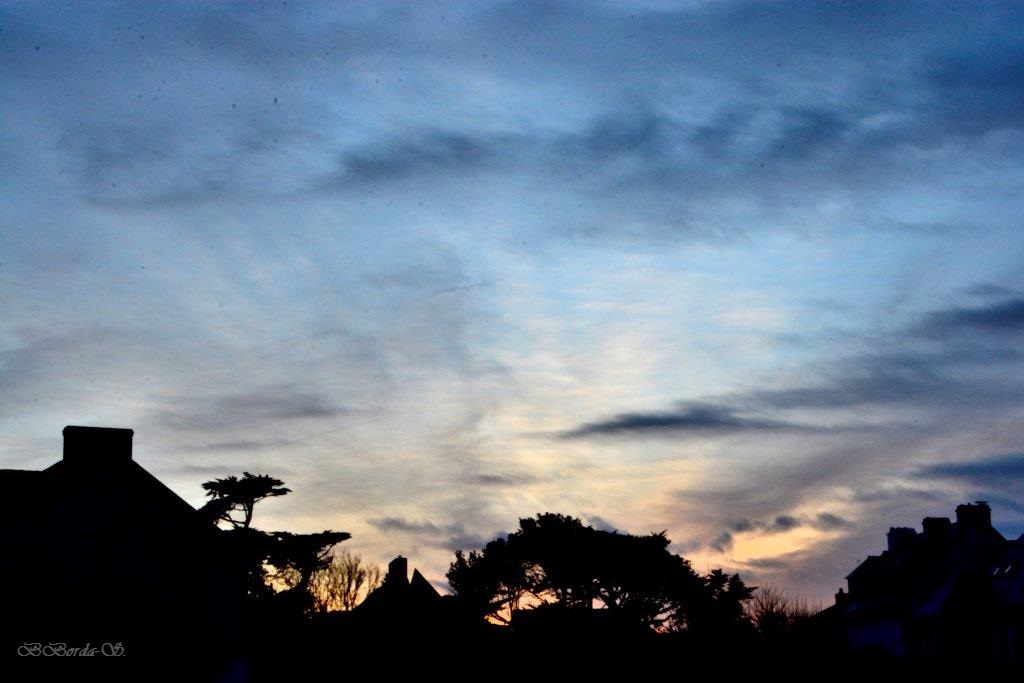 L’après-midi, nouvelle balade, à la recherche des huîtres… Kercabellec, Piriac, l’océan, quelques souvenirs de marins, du sable, de vieilles maisons aux portes étonnamment petites (pour ne pas laisser entrer le vent ?), enseignes, et un retour à Trescalan sous un ciel en feu…