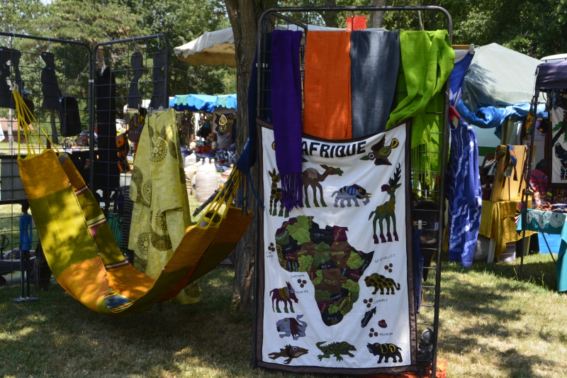 Un festival vraiment intéressant pour qui voudrait découvrir un peu d’Afrique… sans y partir 😉 ! Dans le superbe parc de Launac, un grand marché d’art et artisanat africains, associations et commerces, s’installe dès le vendredi, autour de la scène. Couleurs, objets en récup’, bijoux touaregs en argent ou de différents pays (un stand de bijoux faits uniquement avec des graines d’Afrique… superbes !), tissus, vêtements, sacs…