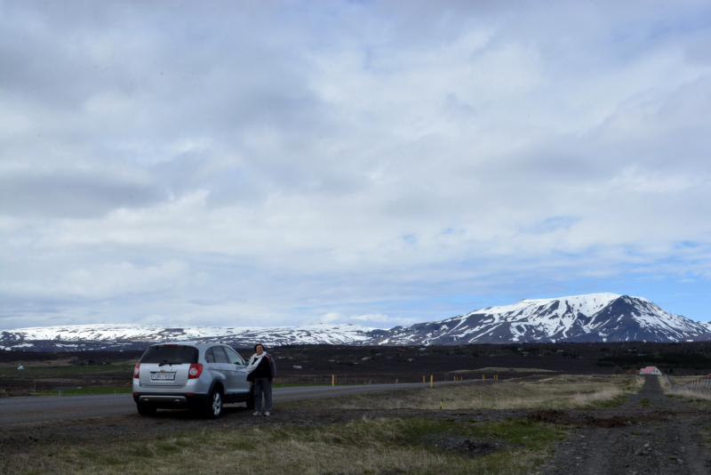 Le « cercle d’or »… de quoi rêver, non ? En fait, c’est le nom attribué aux trois sites les plus connus d’Islande. Est-ce à dire qu’il faut les ignorer, sous prétexte de dizaines de bus débarquant des dizaines de touristes tout au long de la journée ? NON, certainement pas. D’abord, parce que ces sites sont impressionnants. Ensuite parce que si vous ne pouvez rester que 4 jours en Islande, l’Histoire et la Nature se retrouvent dans ce circuit d’une journée. Une chute d’eau sauvage et démesurée. Le jaillissement d’une source chaude, et oui, le fameux geyser… qui au fil du temps (merci les touristes qui jetaient des cailloux dans son « réservoir », l’obstruant et l’empêchant de jaillir) a laissé la place à un geyser moins impressionnant mais plus régulier parait-il, Strokkur. Et Thingvellir, où fut fondé le premier parlement démocratique, l’Althing, immense vallée d’effondrement causée par l’écartement des plaques eurasienne et nord-américaines (qui d’ailleurs continuent à s’écarter de quelques millimètres chaque année…).12juin_0071_vers Thingvellir_7391    Avec comme boussole le glacier Langjökull ! Donc notre troisième journée était consacrée à cette découverte. Départ tranquille (après une petite erreur d’aiguillage de ma part… et ce ne sera pas la seule du voyage ! Jérôme, on ne se moque pas de sa sœur aînée s’il te plaît.), vers l’intérieur des terres. Champs verts, quelques tourbières, et tout au long du trajet le glacier Langjökull en ligne de mire. J’avais encore en tête le récit de H. Laxness « La cloche d’Islande », qui se passe pour une bonne partie dans cette région, et je n’ai pas été étonnée de rencontrer dès le départ deux voyageurs « antiques » !