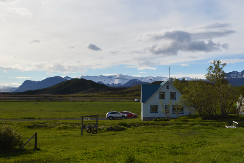Bon, mais le Cercle d’Or n’est pas toute l’Islande ! Donc, nous voilà reparties vers notre prochaine étape, Svìnafell, au pied du grand Vatnajökull. Enfin, ce glacier étant aussi vaste que notre Corse, dire « au pied » du glacier est peu précis… disons que nous étions un peu après le parc national de Skaftafell. Mais pour y arriver, il y a eu tellement à voir ! Et sous un ciel bleu magnifique. Chutes d’eau vertigineuses, falaises « éléphantesques » (oui, je ne sais pourquoi ces falaises me font penser à des éléphants 😉 ), oiseaux nicheurs (c’était la pleine période), plages de sable noir, de galets, arches dignes d’Etretat (mais en noir…), trolls figés dans l’océan, orgues basaltiques, volcans enneigés (dont le fameux Eyjafjallajökull), plaines de cendres, prairies verdoyantes, champs de lave moussue, cascades, moutons, mouettes et macareux… La nature n’est jamais figée, en Islande, on la sent vivre. C’est vrai qu’elle est omniprésente. Imaginez, à peine 380 000 habitants sur un pays de 103 000 km2, il reste de la place pour la nature ! Bref, les arrêts ont été fréquents, et les yeux et le cœur enthousiastes tout au long des 280 km.