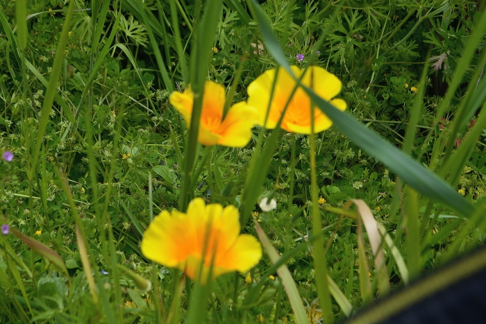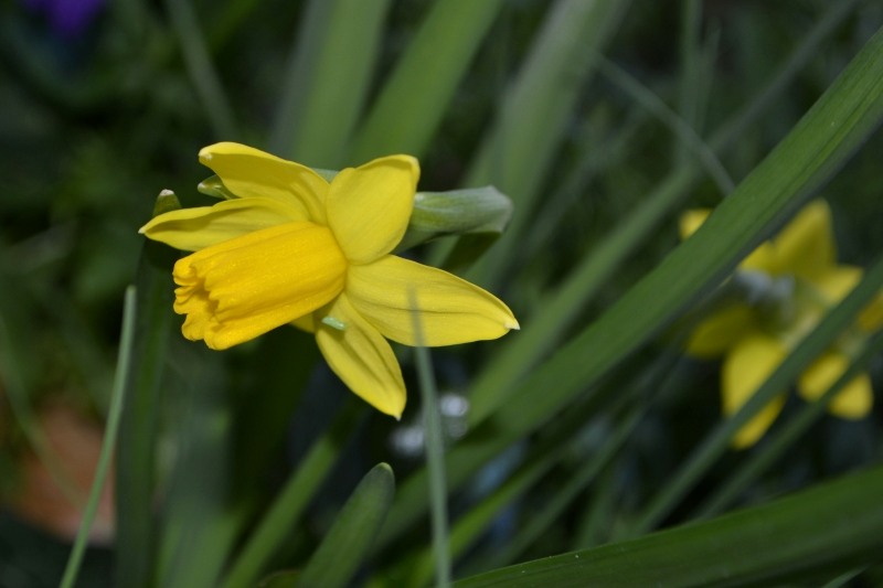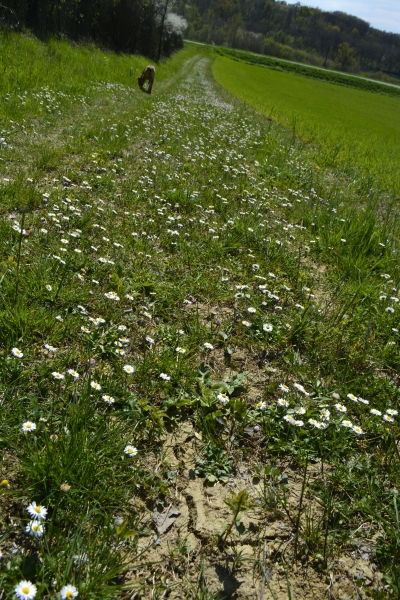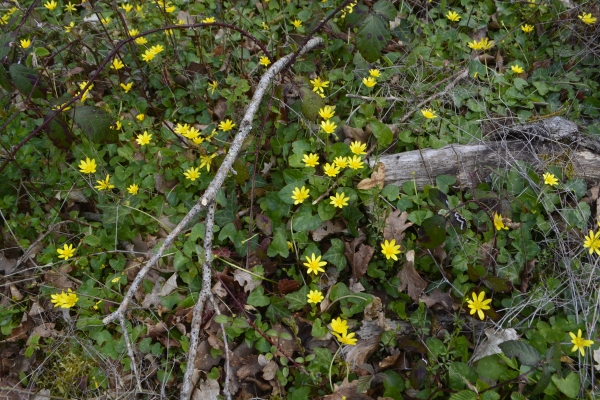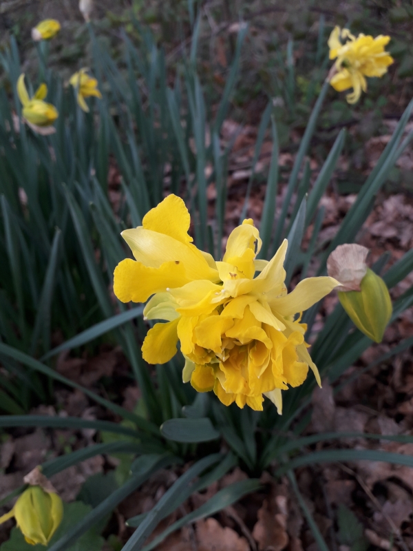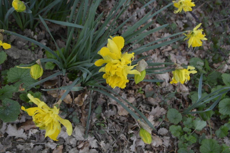 … hier après-midi, petit tour vers « le Poutou » par le sentier des moto-cross, celui qui longe un petit bois. Motos et chevaux tracent le chemin depuis longtemps… chemin le long duquel haies de ronces et épineux sont (trop) bien taillées, mais où les jonquilles sont toujours là, et même de plus en plus !