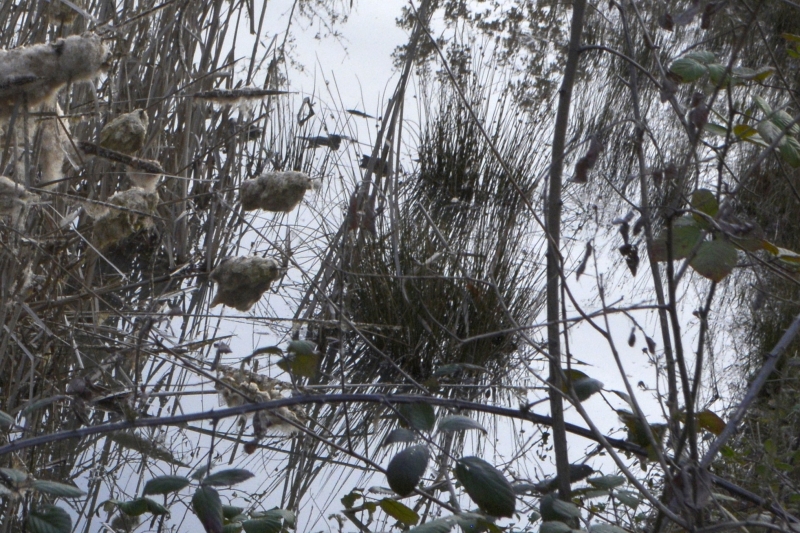Pas d’incursion dans le petit bois, cette fois, d’une part nous étions parties juste pour une heure/une heure et demie, d’autre part… la crainte de retrouver le bord du Marguestaud encore plus boueux que le sentier 😉 . La palombière est toujours debout (j’espère qu’elle n’est là que pour le décor…) et nous entrerons dans le bois une autre fois !