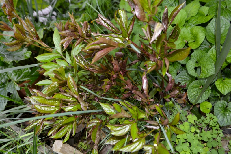 Les pivoines se sont enfin ouvertes. Enfin, pas toutes, il reste un pied avec deux boutons qui se font désirer… Au fil des jours, en peu de temps, ma belle de Shanghai s’est ouverte, puis le vent et la pluie l’ont malmenée, et nous profitons maintenant des dernières fleurs.