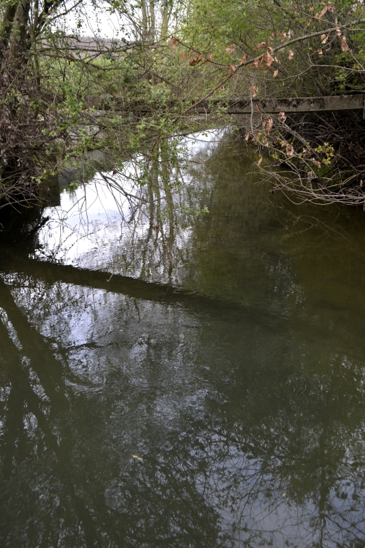 Me voilà au bord du Marguestaud. Bruit d’eau qui coule, c’est rassurant. A travers les branches, quelques miroirs. Tout le long, jusqu’au « grand » chemin de randonnée et au gué, le chemin est bien tracé, chevaux, moto-cross aussi je pense, et merci pour le respect des lois qui oblige les agriculteurs à laisser 2 mètres aux abords d’un ruisseau. Bon, d’accord, par moments le chemin devient sentier, mais même si par endroits je « patouille » un peu, j’arrive sans problème au gué.