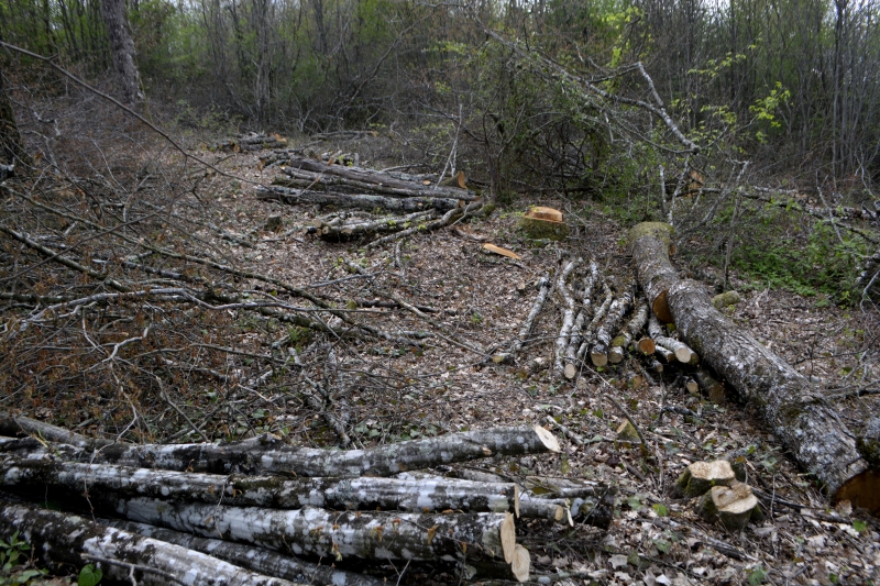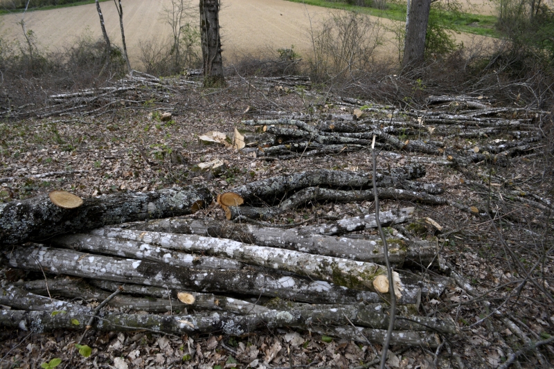 12 février, un dimanche au ciel tout bleu. Je pars vers les bois sur la colline en face, en traversant le champ des voisins. Tout en bas, de l’autre côté de la route, il me semble apercevoir un nouveau chemin. C’est vrai que, ces derniers jours, il y avait des bruits de tronçonneuse. J’essaie, on verra bien où cela me mènera ! Tiens, nous qui cherchions du gui, il n’était pas loin…